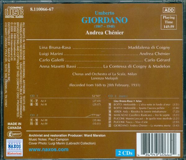 | 1-6 | Colpito Qui M’Avete . . . Un Dì All’Azzuro Spazio (Chénier) | 5:01 | |