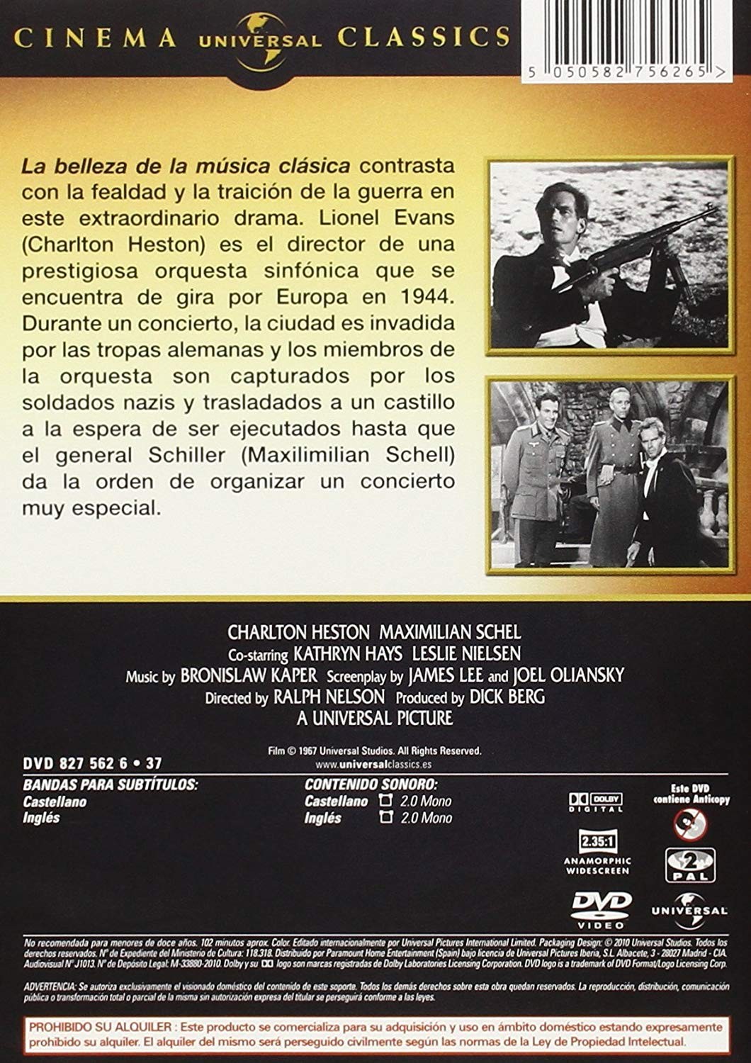 Durante la Segunda Guerra Mundial, una afamada orquesta sinfónica norteamericana, formada por civiles y que está en Europa para entretener a las tropas, es capturada en el frente belga durante una incursión de los alemanes. Los músicos son trasladados como prisioneros a un castillo medieval donde opera el General Schiller (Maximilian Schell), un autoritario militar y gran melómano. Schiller propone al director de la orquesta, el prestigioso concertista Lionel Evans (Charlton Heston), salvar sus vidas a cambio de que ofrezcan para él un concierto exclusivo durante una reunión de altos oficiales alemanes. Sin embargo, los principios éticos de Evans le impiden doblegarse ante la voluntad de un nazi. Su obstinación pondrá en peligro a todos sus compañeros de profesión, en especial ante el despiadado Coronel Arndt (Anton Diffring).