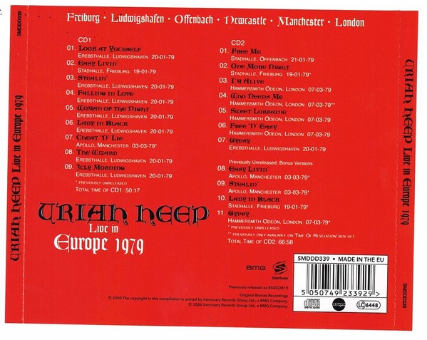 Artista(s) / Grupo: Uriah Heep | Cantidad de Discos: 2 | Lanzamiento: 2006 | Género(s): Rock | Estilo(s): Hard Rock, Classic Rock | TÃtulo: Live In Europe 1979 | Artista(s) / Grupo: Uriah Heep | Cantidad de Discos: 2 | Lanzamiento: 2006 | Género(s): Rock | Estilo(s): Hard Rock, Classic Rock | TÃtulo: Live In Europe 1979