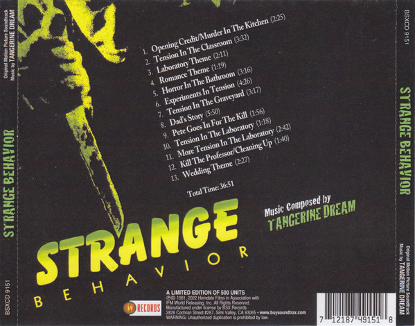 TANGERINE DREAM – STRANGE BEHAVIOR – SOUNDTRACK