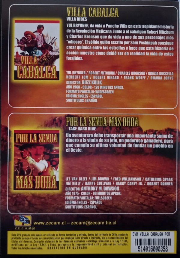 | Género(s): WESTERN | Audio: Ingles , Español / Ingles , Español | SubtÃtulos: Español / Español | TÃtulo: Villa Rides / Take a Hard Ride