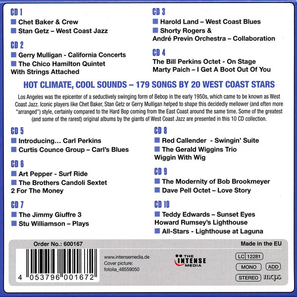 Artista(s) / Grupo: Varios Artistas | Cantidad de Discos: 10 | Lanzamiento: 2014 | Género(s): Jazz | Título: West Coast Jazz | Artista(s) / Grupo: Varios Artistas | Cantidad de Discos: 10 | Lanzamiento: 2014 | Género(s): Jazz | Título: West Coast Jazz