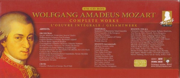 Artista(s) / Grupo: Wolfgang Amadeus Mozart | Cantidad de Discos: 170 | Lanzamiento: 2005 | Género(s): Clásica | TÃtulo: Wolfgang Amadeus Mozart ‎– Complete Works – L’Oeuvre Intégrale – Gesamtwerk | Artista(s) / Grupo: Wolfgang Amadeus Mozart | Cantidad de Discos: 170 | Lanzamiento: 2005 | Género(s): Clásica | TÃtulo: Wolfgang Amadeus Mozart ‎– Complete Works – L’Oeuvre Intégrale – Gesamtwerk