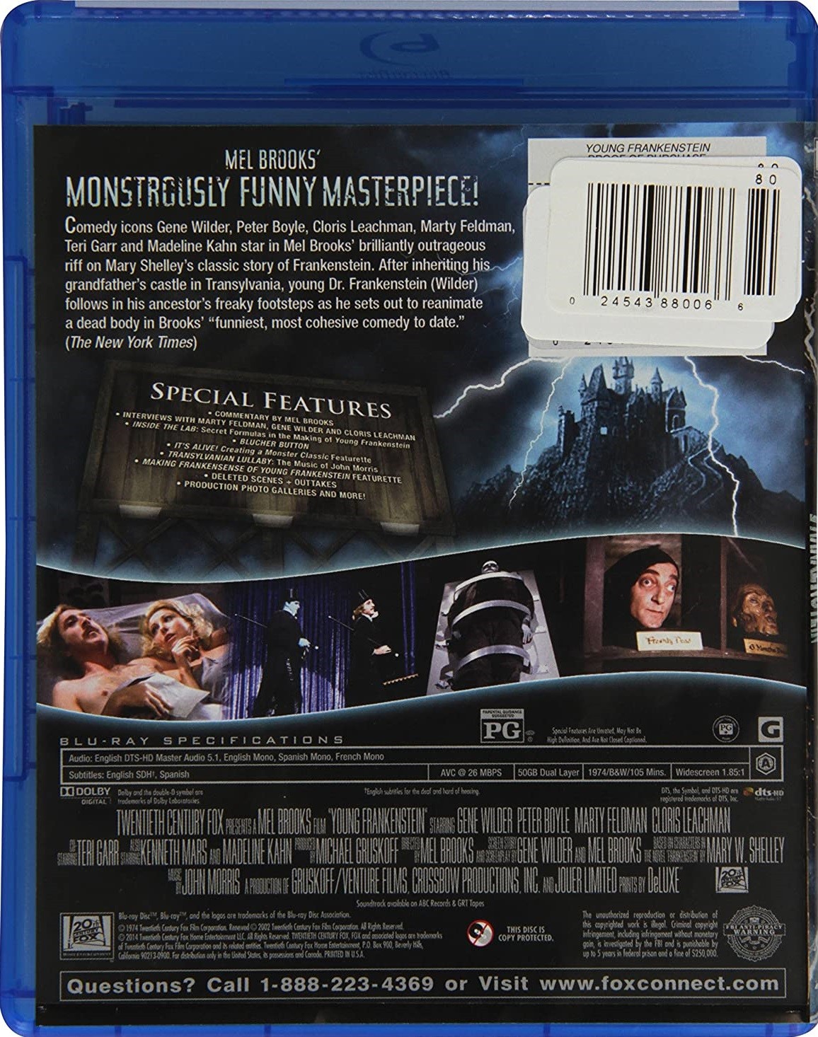 Reparto: Gene Wilder, Peter Boyle, Marty Feldman, Cloris Leachman, Teri Garr, Madeline Kahn, Gene Hackman, Richard Haydn, Kenneth Mars.